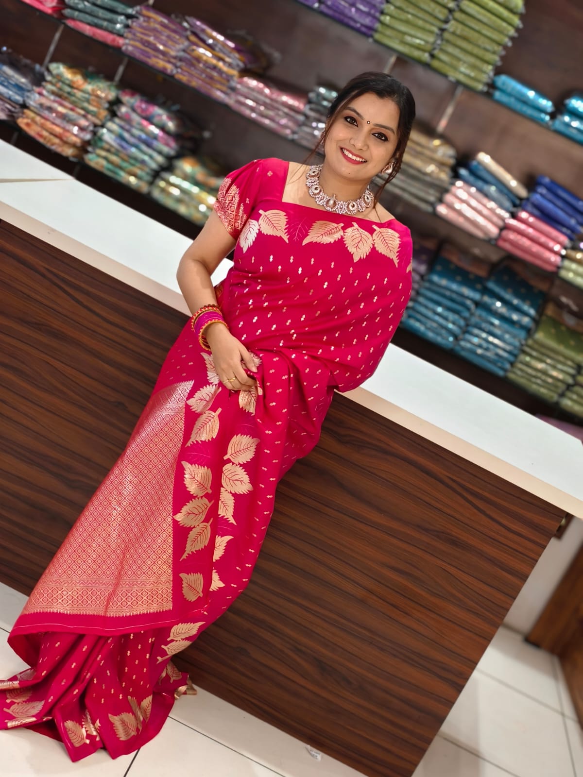 Mulberry soft silk saree with butta weaving,with blouse attached